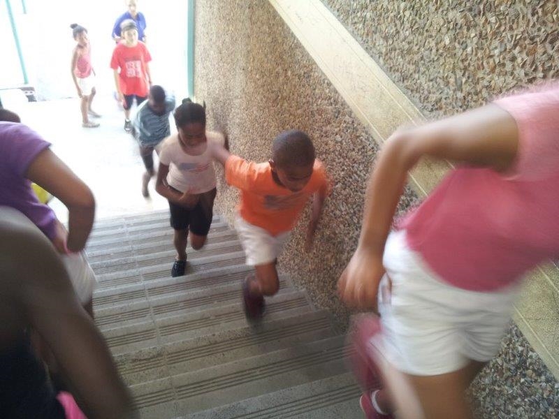 Today athletes were taken through ladder and hurdle routines focusing on their techniques. The integration of stairs and other exercise routines focused on strength as well.